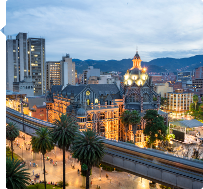 Medellín - la "ville du printemps éternel" - située dans les hautes terres andines d'Antioquia, elle est aujourd'hui la plus innovante d'Amérique latine. Son passé récent était fortement lié à la vie de Pablo Escobar et aux violents combats de gangs. Pendant les vingt dernières années, Medellín a connu des changements drastiques. Un programme innovant de développement urbain qui combine des moyens modernes de transport public et la construction de parcs publics et de zones de loisirs pour la population locale a permis de transformer Medellín de la ville la plus dangereuse du monde en un exemple moderne de transformation urbaine.