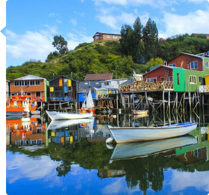 Vous commencerez la découverte par la côte intérieure Est avec la visite des villages de Quemchi et Aucar. Vous marcherez sur une passerelle piétonne en bois de 560 mètres de long qui relie le village d’Aucar avec l’île de Chiloé. Continuation vers Colo dont l'église a été déclarée site du patrimoine mondial. La visite se poursuit vers les villages de Tenaún et Dalcahue avec leurs maisons construites sur pilotis. Petit arrêt au marché artisanal qui expose des ouvrages en laine.