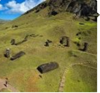 Ce fascinant voyage archéologique vous permettra de découvrir les mystères de l'île et de ses moaïs. L'excursion débute à Ahu Akahanga, une zone de moaïs allongés et dont les légendes racontent comment le premier roi de l'île fut enterré. L'aventure se poursuit par la visite de Rano Raraku, un lieu sacré où la plupart de ces pierres gigantesques ont été sculptées, révélant l'énigme de leur transfert vers d'autres points de l'île. La prochaine destination est Ahu Tongariki, un lieu icônique qui compte 15 moaïs restaurés et érigés au cours des dernières décennies. Ce lieu est l'antichambre parfaite de Te Pito Kura, un centre cérémoniel qui abrite le plus grand moaï jamais construit. L'excursion se terminera par la visite de Hanga Rau ou Te Ariki, plus connue sous le nom de plage d'Anakena, où se trouvent les moaïs les mieux préservés de toute l'île d'Ahu Nau Nau. Vous pourrez y profiter d'un moment de repos et de contemplation, en prenant un bain de soleil sur sa magnifique plage bordée de palmiers, de sable blanc et d'eaux turquoise.