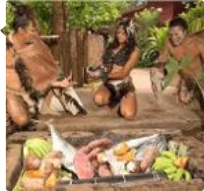 Le spectacle folklorique vous fera découvrir les différentes étapes de la musique de Rapa Nui, des chants ancestraux a cappella aux sonorités de l'accordéon, de l'harmonica, de la guitare et des percussions. Au fil de la soirée, vous assisterez à la fusion des rythmes polynésiens et de la danse, créant une ambiance vibrante et énergique. Vous dégusterez ensuite un dîner UMU, un buffet traditionnel composé de viandes, poissons, salades, plats chauds et desserts, préparés avec les saveurs uniques de l'île.